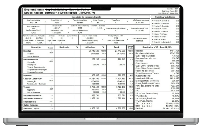- Rentabilidade Final: Lucro esperado do empreendimento.